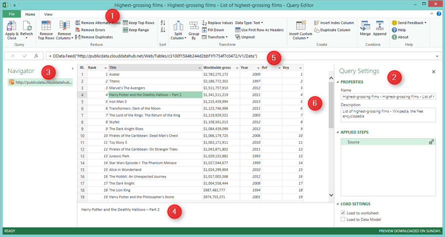 Bila anda buka Power Query Editor, anda akan nampak beberapa komponen penting: